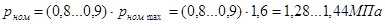 Давление насоса pн принимается равным предварительно выбранному номинальному давлению pном по ГОСТ 12445-80: Pном =1.6 МПа;