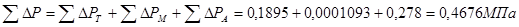 ΣΔPТ =0,0067+0,0979+0,0849=0,1895МПа.