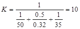 Значения коэффициентов α1 и α2 принимаем α1=50, α2=35.