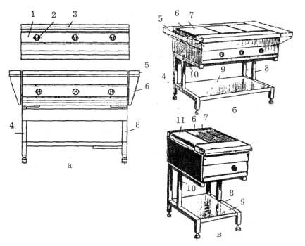 Технологическая универсальность плит, возможность использования только части их рабочей поверхности при различных температурных режимах и достаточно развитая сеть мелких, специализированных и сезонных предприятий общественного питания обуславливают широкое распространение этих аппаратов.