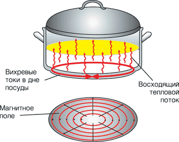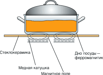 - с индукторами с нижней стороны стеклокерамической конфорки (индукционные плиты).