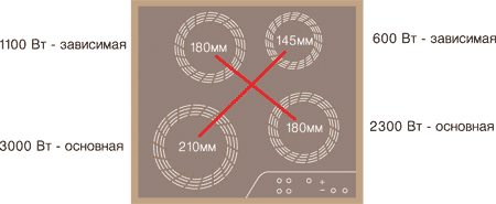 · мощность конфорки должна регулироваться пакетными переключателями;
