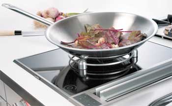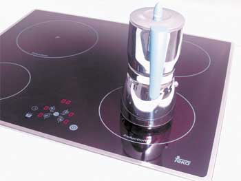 Наряду с рассмотренными плитами следует особо отметить плиты «Витро-экспресс», выпускаемые фирмой «Кюпперсбуш» (Германия). Новинками в этих плитах являются: электронная система опознавания емкостей «Sensormatic»; конфорки из стеклокерамики; автоматическое включение нагрева при постановки емкости на плиту; автоматическое выключение нагрева при снятии емкости с плиты; соответствие требованиям европейских стандартов; наличие двух температурных зон на поверхности плиты в процессе жарки; наличие отверстий в плитах с целью установки малых решеток для гриля. Стеклокерамические конфорки, имея такую же мощность тэнов, что и плиты с чугунными конфорками, нагреваются в пять раз быстрее, а при повторном включении — на 20—30 с быстрее по сравнению с первым включением. По быстроте нагрева плиты «Витро-экспресс» сравнимы с газовыми плитами. Эти плиты предназначены для непосредственной жарки на стеклокерамике. Теплофизические свойства стеклокерамики гарантируют высокое качество поджариваемого продукта и быстроту его приготовления при затратах электроэнергии примерно на 30% меньше, чем при проведении той же операции на обычных жарочных плитах.