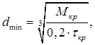 Допустимое напряжение кручения вала τкр = 5 х 107 Н/м2