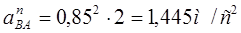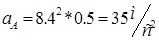Обертання ланки 1 є рівномірним, тому прискорення крапки А дорівнює: