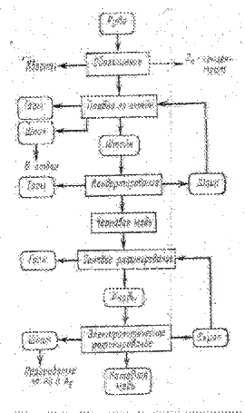 Реализация этой схемы на различных переделах, особенно на начальных этапах до получения медного штейна, может проводиться в различных печах и в различных технологических вариантах. В рассматриваемой схеме первый передел медной руды - это обогащение. Однако бывают случаи, когда руды, обогащенные серой (свыше 35%), плавят без обогащения для извлечения из них не только меди, но и серы. Однако основная масса добываемой из недр земли сульфидной медной руды подвергается флотационному обогащению.