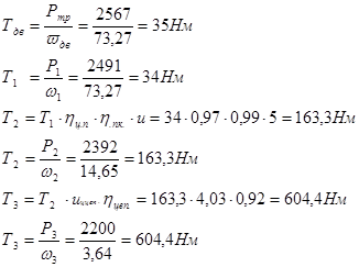 Определяем крутящие моменты на валах: