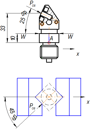 Заготовка зажимается за боковые плоские поверхности с помощью самоцентрирующего механизма приспособления. Тем самым исключается погрешность базирования, вызванная смещением заготовки вследствие неточности изготовления. Опорной базой служит “штифт опорный”.