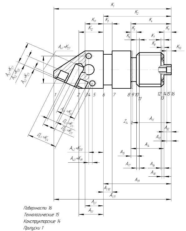 На основе принятой схемы компоновки разрабатываем принципиальную схему расчета приспособления (рис. 2), учитывающий тип, число и размеры установочных и зажимных устройств.