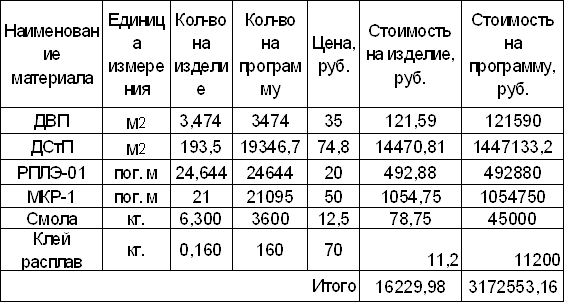 3.5 Расчёт количества основных материалов.