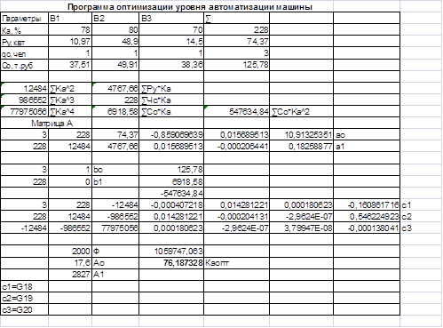 3) подбирают автоматические машины для исследуемых процессов, при этом стремятся к тому, чтобы средний уровень автоматизации производства был примерно равен оптимальному значению, а суммарная стоимость машин не превосходила предельного значения;