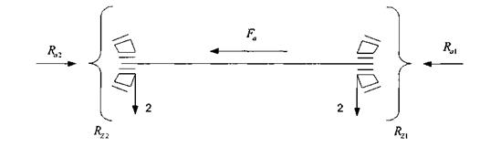 Частота вращения вала, n2 = 95,5 об/мин, угловая скорость ω2 = 10 с-1 , dn = 35 мм. Схема установки подшипников - в распор. На опоры вала действуют силы: