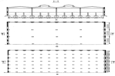 При проектировании широкое применение должны найти одноэтажные здания (рис. 1), в которых можно более удобно, чем в многоэтажных, разместить взаимосвязанные производственные цехи и отделения, обеспечить более короткие пути перемещения сырья и полуфабрикатов в процессе производства, а также рациональнее расставить технологическое оборудование благодаря более крупной сетке колонн.