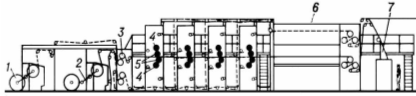 3) вынос бумагоподающих систем ролевых печатных машин в нижний этаж (так называемая этажная установка машины), при которой сокращаются пути перемещения бумаги и затраты на механизацию грузовых потоков, улучшаются санитарные условия в печатных цехах и повышается качество продукции, в особенности многокрасочной, благодаря уменьшению бумажной пыли, образующейся при размотке бумажных рулонов. Кроме того, вибрация, имеющая место при заботе печатных машин и при размотке рулона, рассредоточивается на два этажа.
