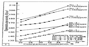 Наиболее слабым компонентом в структуре фарфора является полевошпатовое стекло, которое в сумме со всей стеклофазой составляет 50 – 60% всей массы черепка. Прочность его зависит от содержания Al2 O3 , SiO2 , K2 O.