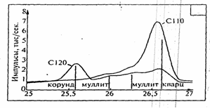 1 период (рис. 3-б) характеризуется протеканием реакций в твердой фазе. Продуктами этого периода являются кварц, полевой шпат и каолинитовый остаток, включающий муллит и избыточный кремнезем. Таким образом, в этом периоде наблюдаются превращения глинистых компонентов.