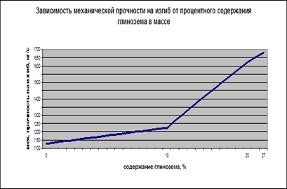 На Камышловском изоляторном заводе «Урализолятор» выпускается электрофарфор марки 110.1 из тонкодисперсной фарфоровой массы. Данная продукция обладает достаточно высокими электрическими свойствами, но недостаточно высокими механическими. Путем введения в массу компонента глинозема будет достигнута необходимая, для крупногабаритных изделий, в данном случае, для изоляторов П 1000/110 – 10 , механическая прочность.