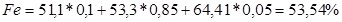 Здесь 84 и 5,6 - содержание железа соответственно в металлодобавках и золе кокса, %: