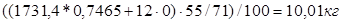 f - Коэффициент уминки (усадки) шихты в печи, равный 12,5%.