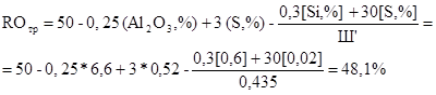 Коэффициенты перехода марганца и фосфора в чугун принимаются равными 0,6 и 1,0 соответственно, тогда ориентировочно в чугуне будет содержаться: