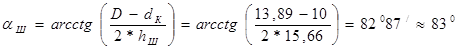Значения проектного угла шахты менее