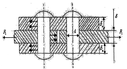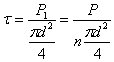 . Обычно принимают равномерное распределение этих напряжений по сечению. Тогда при диаметре заклепки d на единицу площади сечения будет приходиться напряжение [21]: