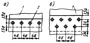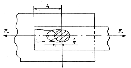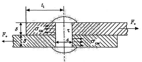 Из этого условия можно определить необходимый диаметр заклепок, если задаться их числом, и наоборот. Обычно задаются диаметром заклепочных стержней d в соответствии с толщиной t склепываемых частей (обычно d=
