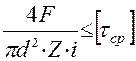 , мы напишем условие прочности заклепки на перерезывание в таком виде: