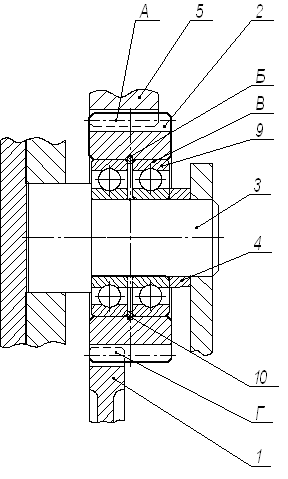 В – соединение промежуточной шестерни 2 с наружными кольцами подшипников 9;