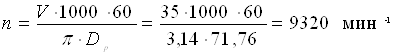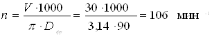 где S-подача, S = 0,8 м/мин