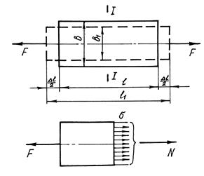 Подставив в выражение (8) значения σ (7) и ε (5), получим формулу для определения абсолютного удлинения стержня