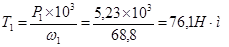 Определяем вращающие моменты на валах двигателя, быстроходном и тихоходном валах по формуле