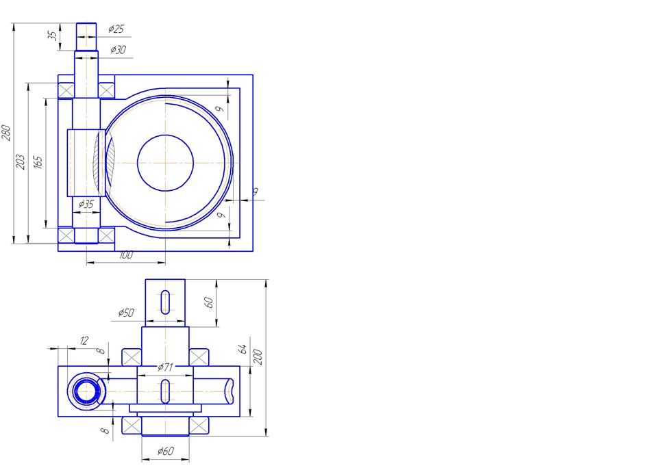 Для предотвращения задевания поверхностей вращающихся колес за внутренние стенки корпуса внутренний контур стенок провести с зазором х=8…10мм [3]; такой же зазор предусмотреть между подшипниками и контуром стенок. Расстояние между дном корпуса и поверхностью колес принимаем