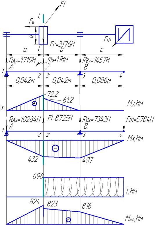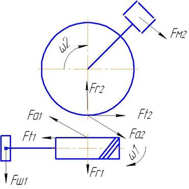 Определяем радиальные нагрузки, действующие на подшипники (12.1)