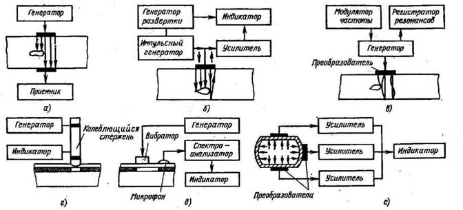 Рисунок 2 – Схемы основных акустических методов контроля. |
