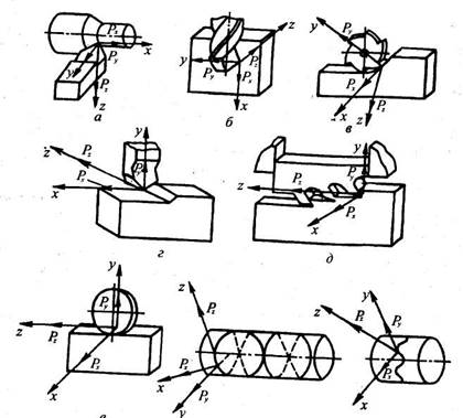 Силы резания Р представляют собой силы, действующие на режущий инструмент в процессе упругопластической деформации и разрушения срезаемой стружки.