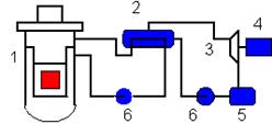 Вдоль топливных элементов двигается теплоноситель, который воспринимает тепло ядерных превращений. Нагретый в активной зоне теплоноситель двигается по контуру циркуляции за счет работы насосов либо под действием сил Архимеда и, проходя через теплообменник, либо парогенератор, отдает тепло теплоносителю внешнего контура.