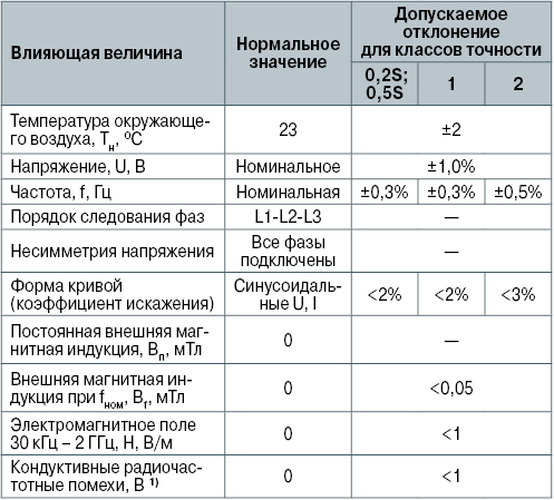 Таблица 1. Нормальные условия проверки счетчика на точность