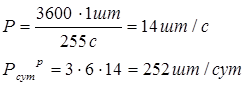 Pi = 14 шт./ч - технологическая производительность машины, т/ч;