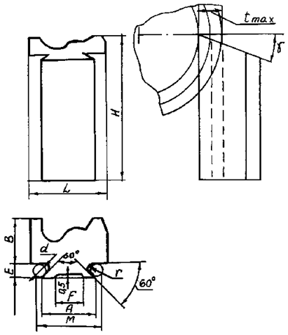 4. Осевые размеры между узловыми точками детали и резца равны. Для нашего случая tмах = 8мм, и следовательно по данным из таблицы выбираются конструктивные размеры призматического резца:(Рис. 3)