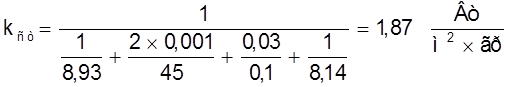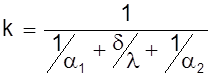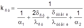 где k - коэффициент теплопередачи (характеризует интенсивность теплопередачи от одного теплоносителя к другому через разделяющую их плоскую стенку);