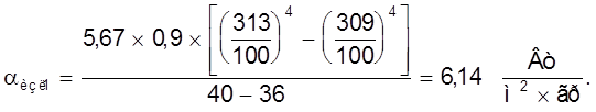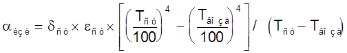 Общие коэффициенты теплоотдачи методически оцениваются одинаково - как сумма коэффициентов теплоотдачи конвекцией (aкон ) и излучением (aизл ):