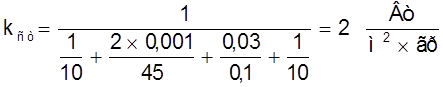 a1 - общий коэффициент теплоотдачи к внутренней поверхности стенки;