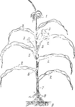 Эта культура тропического происхождения начинает расти при довольно высоких температурах (10°), период ее вегетации растянут до 160 дней, она плохо переносит заморозки (до —2°), нуждается в больших запасах тепла. Для вызревания зерна раннеспелых сортов требуется 1—2200° биологически активных температур, а для более продуктивных средне- и позднеспелых сортов -2500-2900°. При этом кукуруза засухоустойчива, особенно в первые фазы вегетации, но недостаток влаги перед выбрасыванием метелок заметно снижает урожайность.