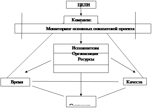 При разработке инновационного проекта этап планирования, чрезвычайно важный, сложный, а иногда и длинный, является не чем иным как «заявлением намерений». В действительности на ход реализации проекта воздействует множество как внешних, так и внутренних дестабилизирующих факторов. Это приводит к изменению расчетных параметров (временных и стоимостных) проекта. В этих условиях одним из важных средств реализации поставленных целей является контроль за ходом реализации проекта, т.е контроль за исполнением календарных планов и расходование ресурсов. Контроль осуществляется по трем аспектам реализации проекта.