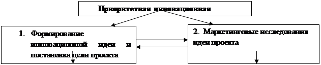 - формирование инновационной идеи. Это процесс зарождения инновационной идеи и формулирования генеральной (конечной) цели проекта. На этом этапе определяются конечные цели (количественная оценка по объемам, срокам, размерам прибыли) проекта и выявляются пути их достижения, определяются субъекты и объекты инвестиций, их форме и источники;