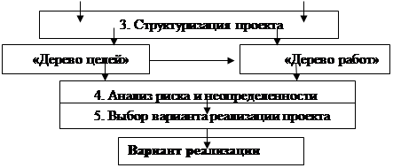 Результатом структуризации проекта является перечень мероприятий (состав заданий, тем и работ), выполнение которых необходимо для обеспечения достижения в установленные сроки целевых значений проекта по каждому из вариантов его реализации.