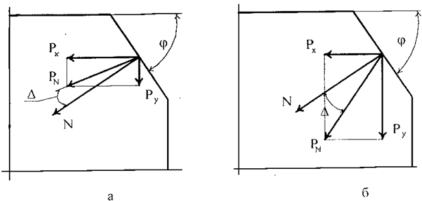 Рисунок 1 – К определению силы Рy: а – отрицательное значение угла