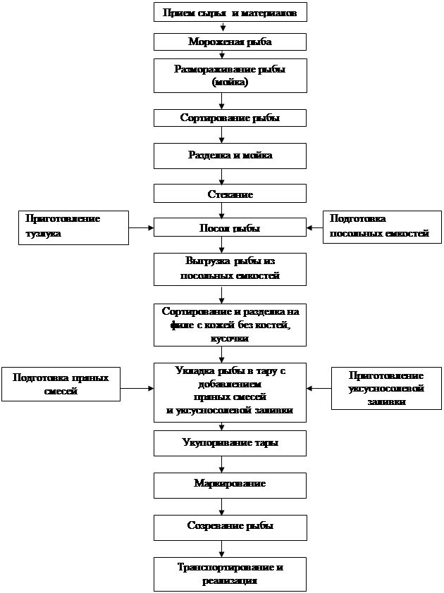 Технологический процесс производства рыбных пресервов осуществляется согласно схеме: