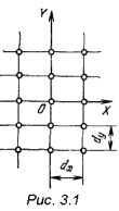 Одним из наиболее распространенных типов ФАР являются линейные и плоские решетки. Большинство плоских ФАР состоит из идентичных излучателей, расположенных в узлах плоской координатной сетки с двойной периодичностью. Наиболее употребительными являются прямоугольная и треугольная (или гексагональная) сетки. Выбираем прямоугольную сетку рис. 3.1. При элементарном рассмотрении предполагается, что ДН излучателя в решетке не отличается от ДН изолированного излучателя. Далее определим параметры прямоугольной сетки по заданному значению ширины главного лепестка диаграммы направленности, уровню боковых лепестков и сектору сканирования для каждой плоскости в отдельности.